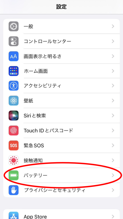 ①本体設定Appを開き【バッテリー】を選択