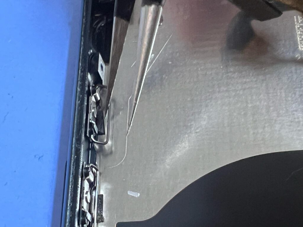 (1)液晶パネルを開け、コネクタカバーを外します。
