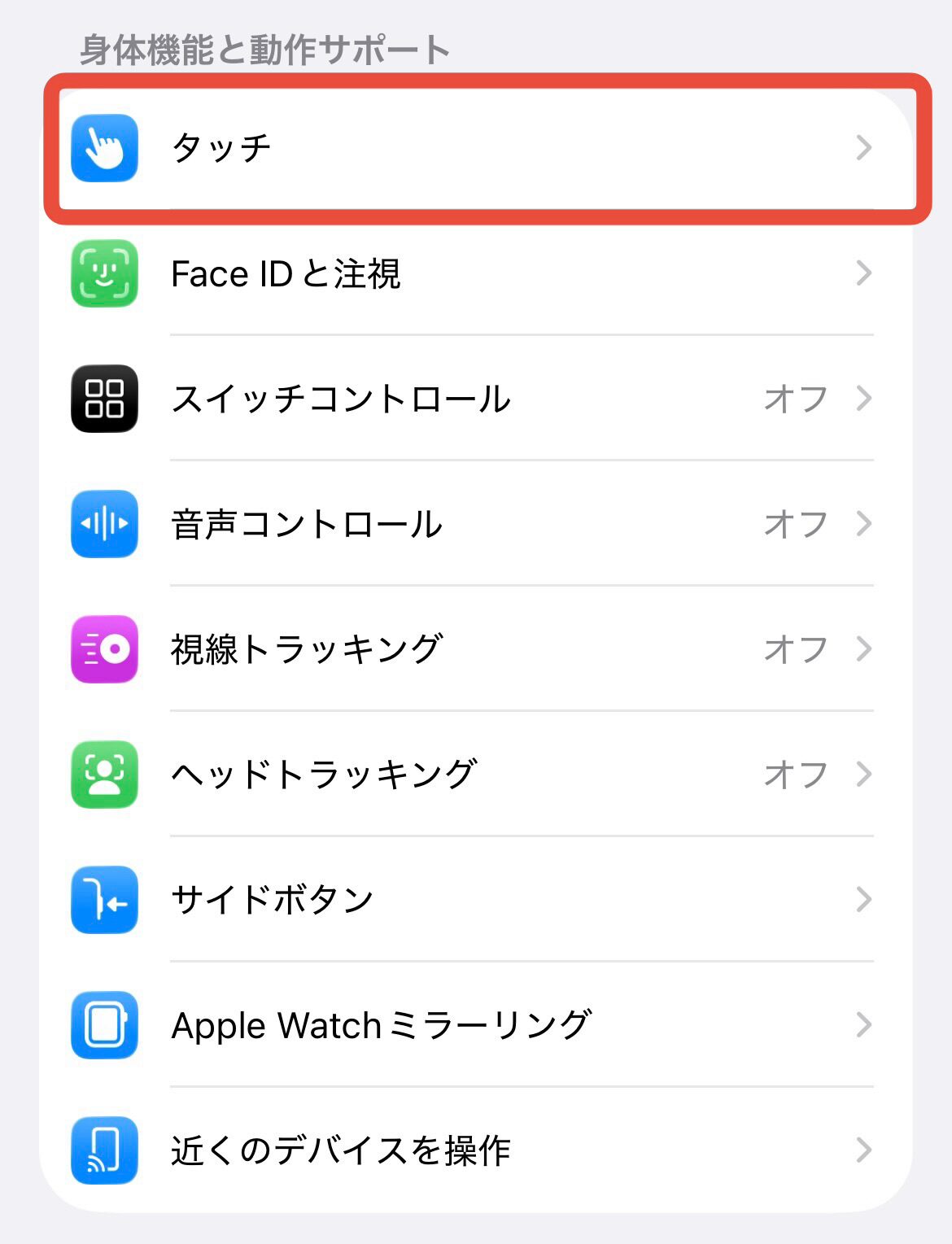 ②タッチを選択