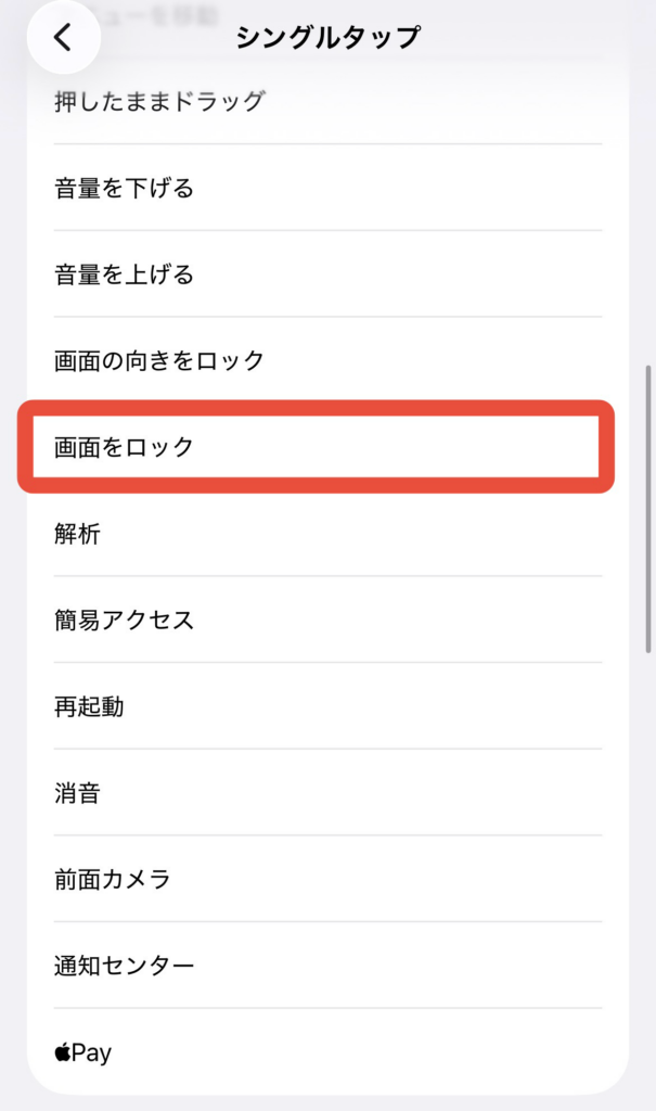⑤画面をロックを選択します。