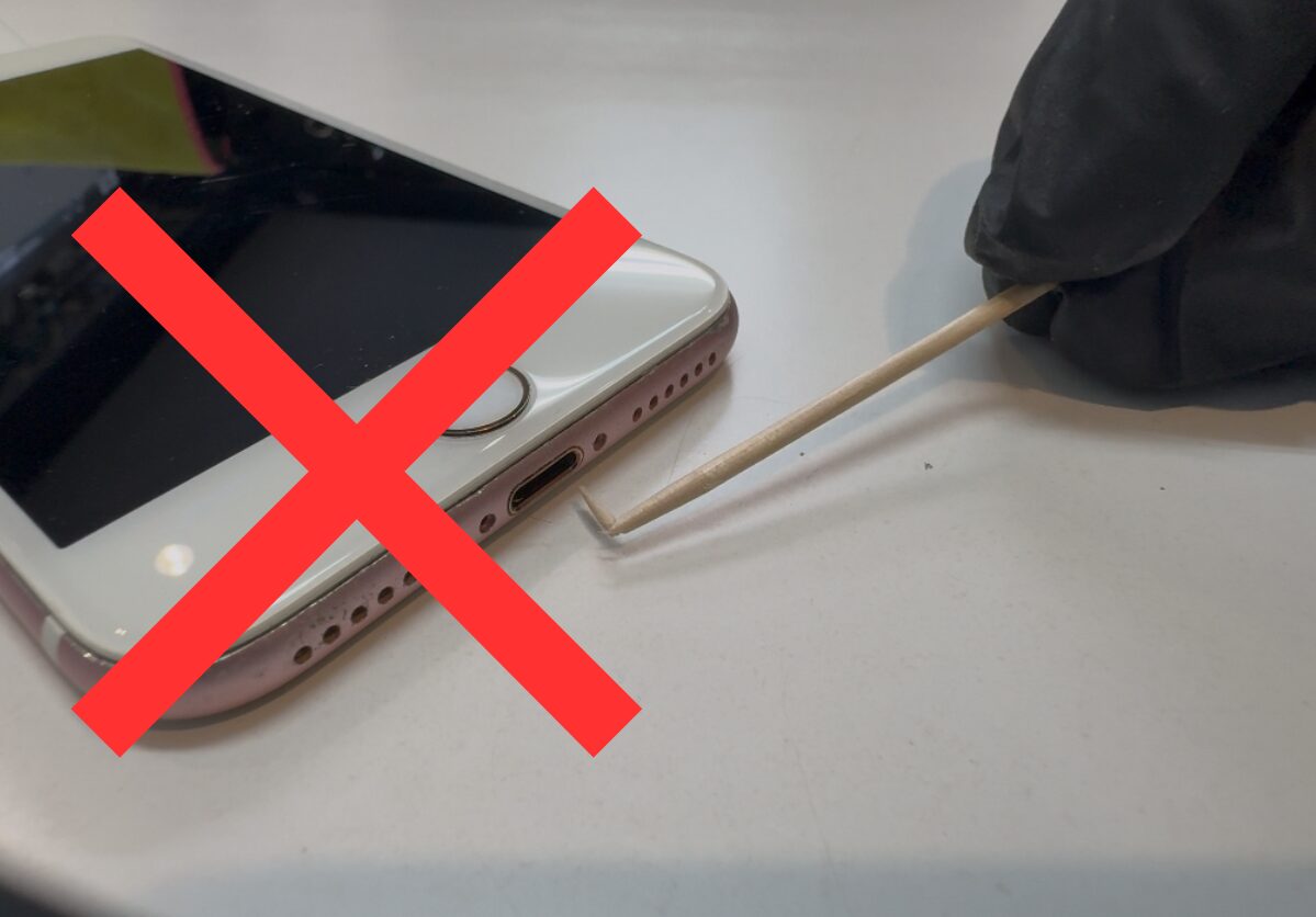 スマホのメンテナンス時等に、つまようじを使用するのはやめてください。