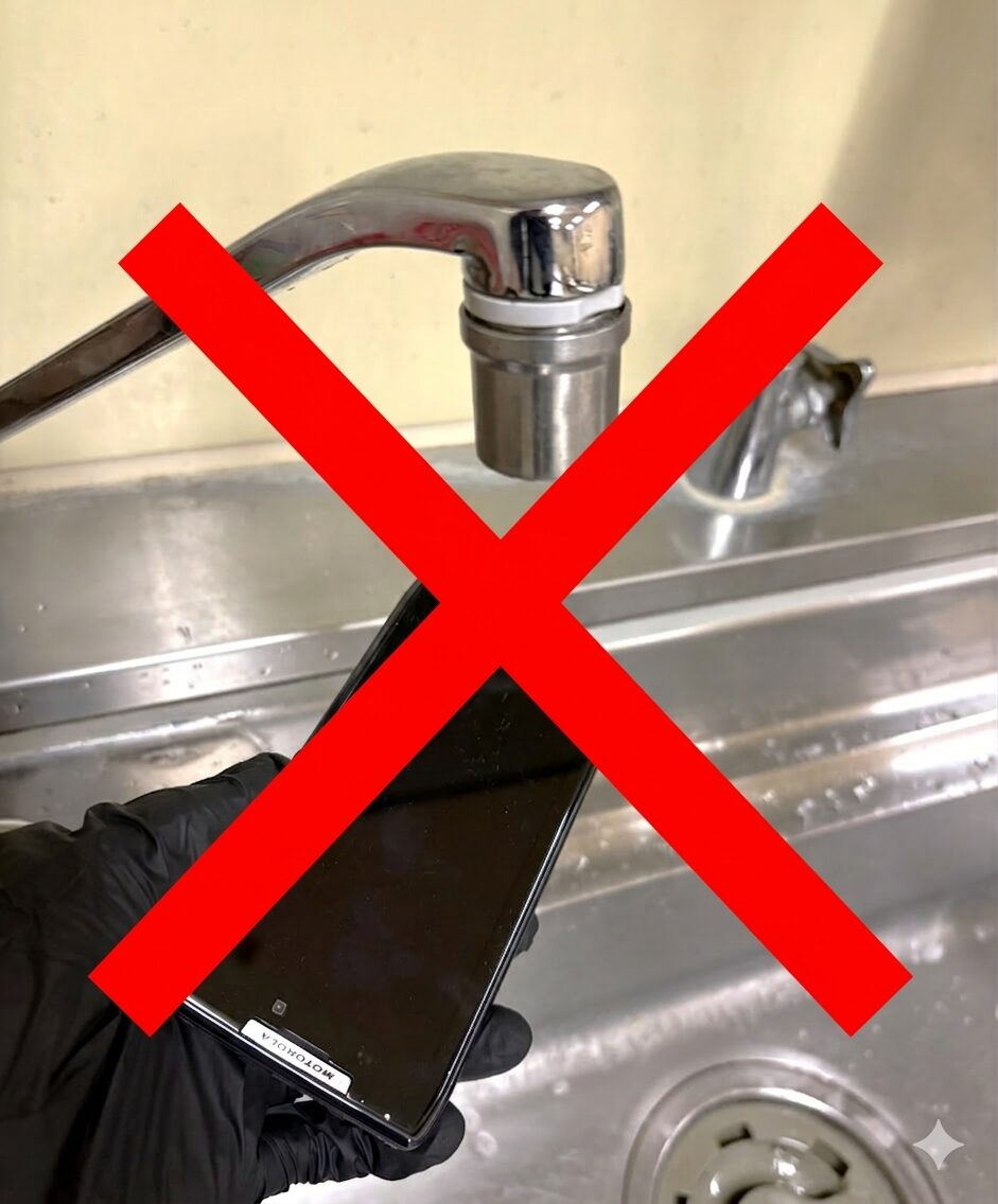 スマホをきれいにしたいからと、水で洗う・水に濡らすのは絶対にやめてください。