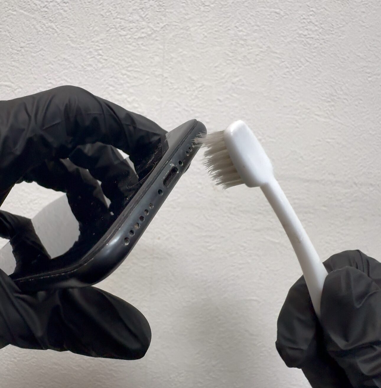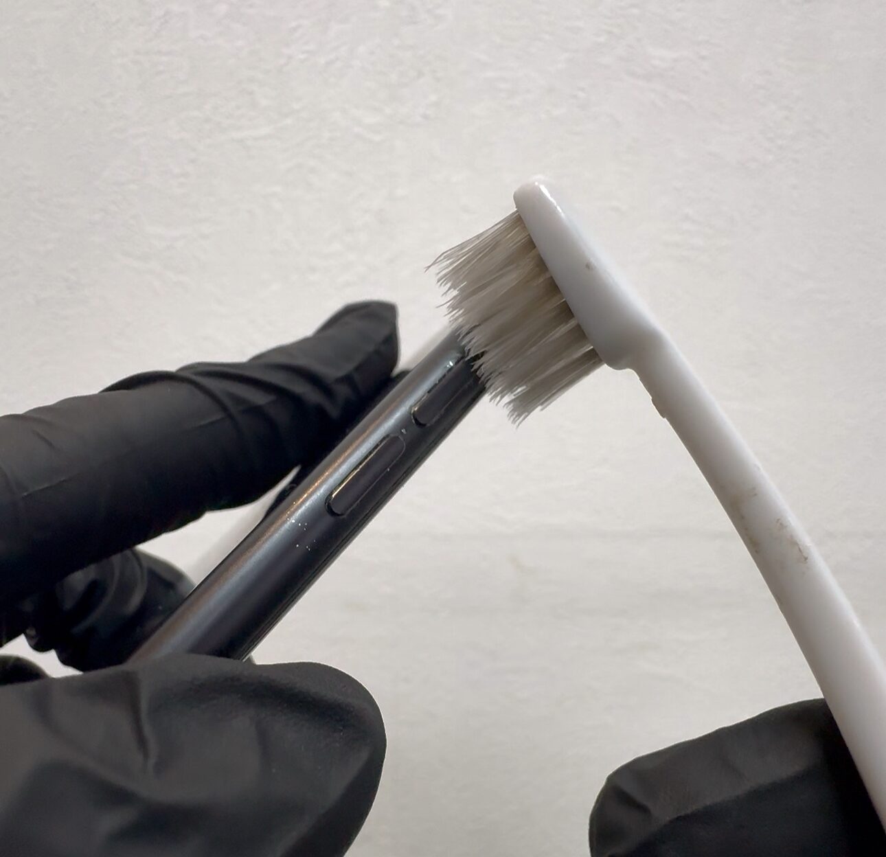 目に見える汚れは綿棒や歯ブラシでこすり、汚れを取ってください。
