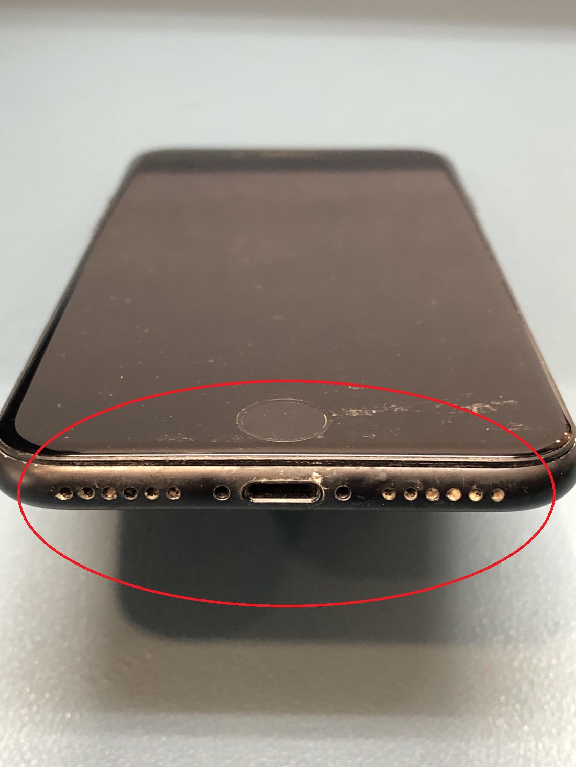 この部分は本体下部に内蔵されているスピーカーの音の出口であったり、充電器を差し込む部分となっています。