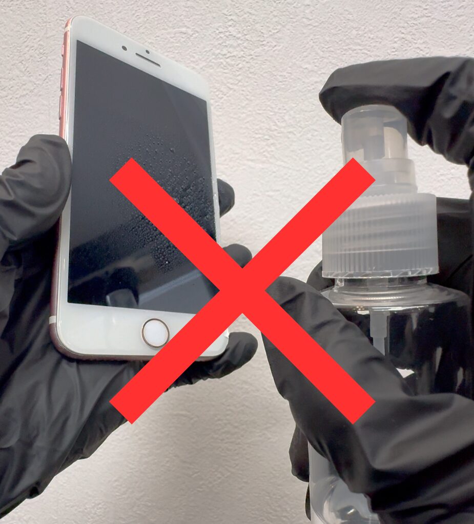 スマホに消毒液を直接吹きかけて除菌するのはやめてください。